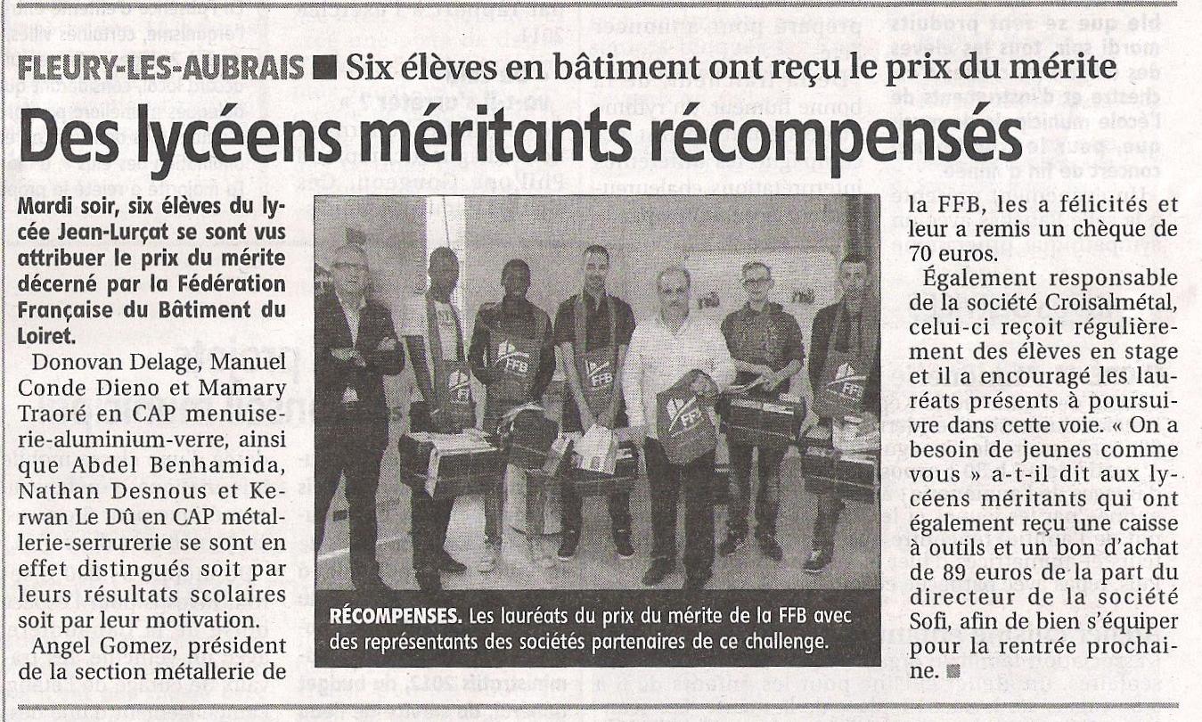 Des lycéens méritants de la classe de terminale CAP 2013 ont été récompensés mardi 25 juin.