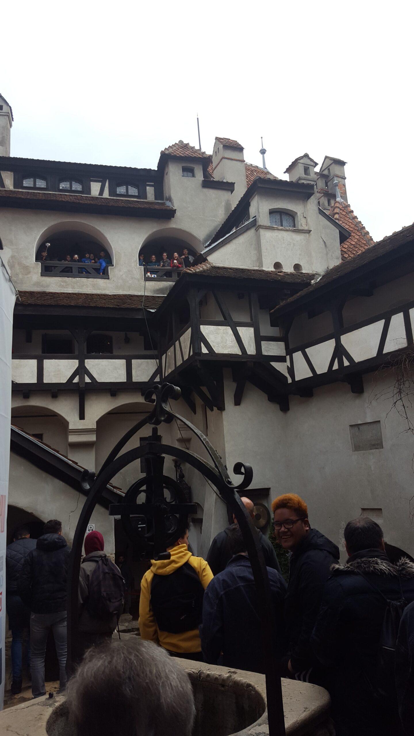 Nous avons poursuivi notre journee en remontant dans le bus ou nous attendait un trajet d’environ 3 heures, pour nous rendre dans la ville de Bran, ou nous avons visite le château qui inspira Bram Stocker pour la legende de Dracula.