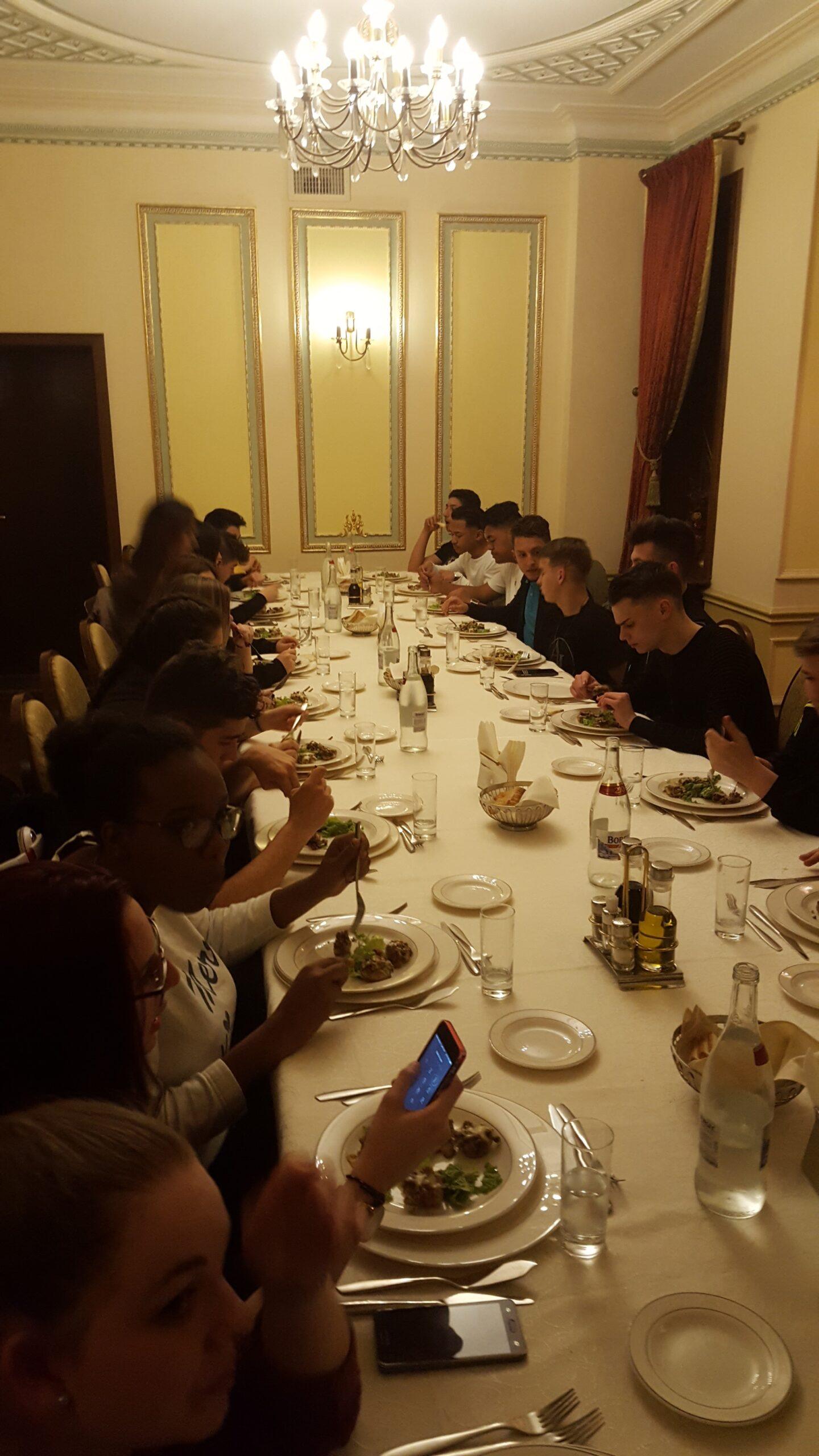 Nous sommes repartis a 18 heures pour un trajet de 3 heures pour retourner a Bucarest ou le restaurant « Noblesse » nous attendait avec un delicieux repas puis nous sommes rentres a l’hotel pour enfin nous reposer apres cette longue journee.