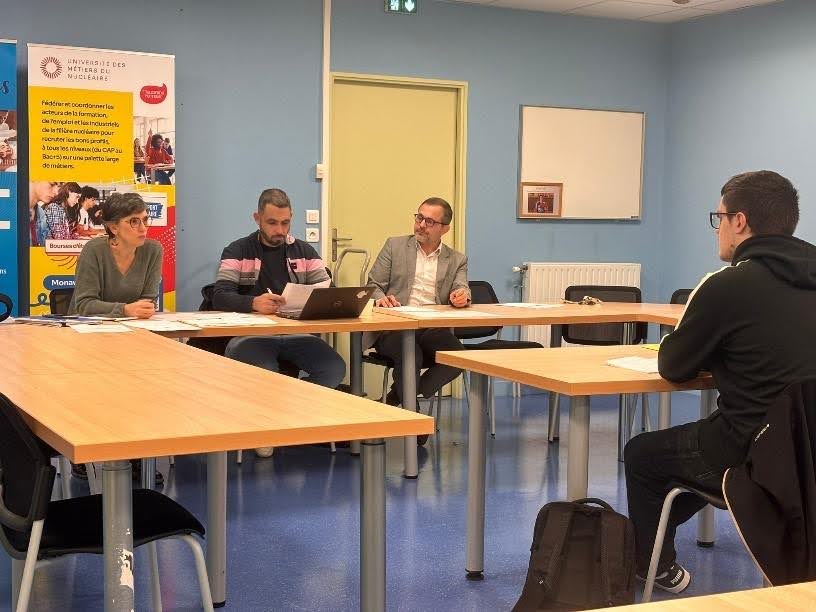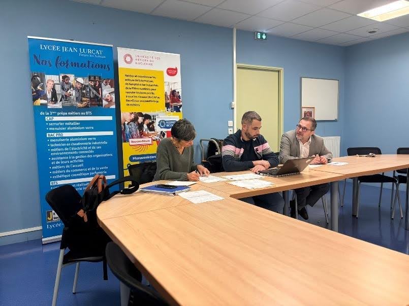 Depuis octobre 2024, un nouveau partenariat a été signé entre l’UMN et le lycée pour promouvoir les métiers de nucléaire et donc proposer aux élèves des filières des métiers de l’électricité et ses environnements connectés et métiers de la Chaudronnerie Industrielle de bénéficier d’un passeport nucléaire à travers des cours d’E-learning, visites de CNPE, rencontres avec des professionnels de la filière et trois bourses aux mérites ont été attribuées à trois élèves sélectionnés sur dossier et entretien individuel le 26 novembre 2024