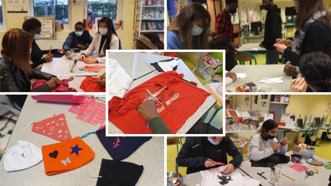 Les élèves ont donc transformé leur T-shirt usé ou hors d’usage ou taché pour l’utiliser en tant que matière première et créer de nouvelles pièces : pochons avec les manches, sac avec le corps… ou bien un flocage personnalisé pour le relooker et permettre de prolonger sa durée de vie ! Comme nous le montrent les photos, les élèves ont bien joué le jeu !
