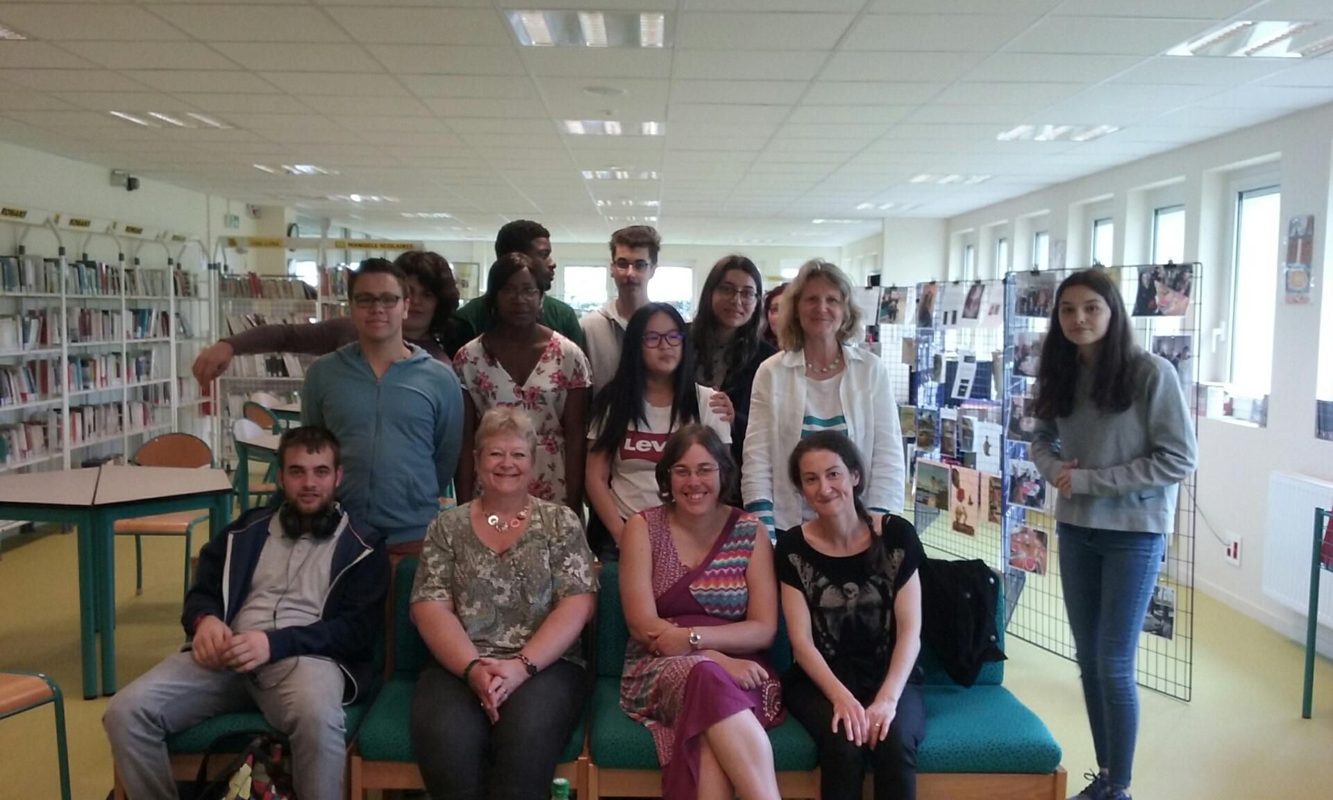 les élèves du club avec les trois bibliothécaires de Fleury (assises devant) et la documentaliste