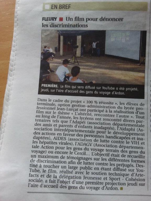 Le projet de vidéo supervisé par M. Meunier et Mme Rey, a été validé et il a obtenu de participer à la sélection officielle de « Je filme ma formation ».