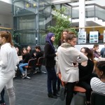 A la fin de la visite nous avons discuté avec les élèves, elles nous ont parlées des matières, de la journée type d’un élève dans l’école, etc.