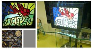 Ce jeudi midi du 25 mai a eu lieu la présentation/vernissage des productions des élèves de CAP MAV (menuiserie aluminium-verre), de l’équipe pédagogique et administrative ainsi que M. Eddy Romet (artiste) ayant accompagné ce projet dans la fabrication de vitraux en lien avec les œuvres de M. Jean Lurçat (artiste peintre, céramiste et créateur de tapisserie français).